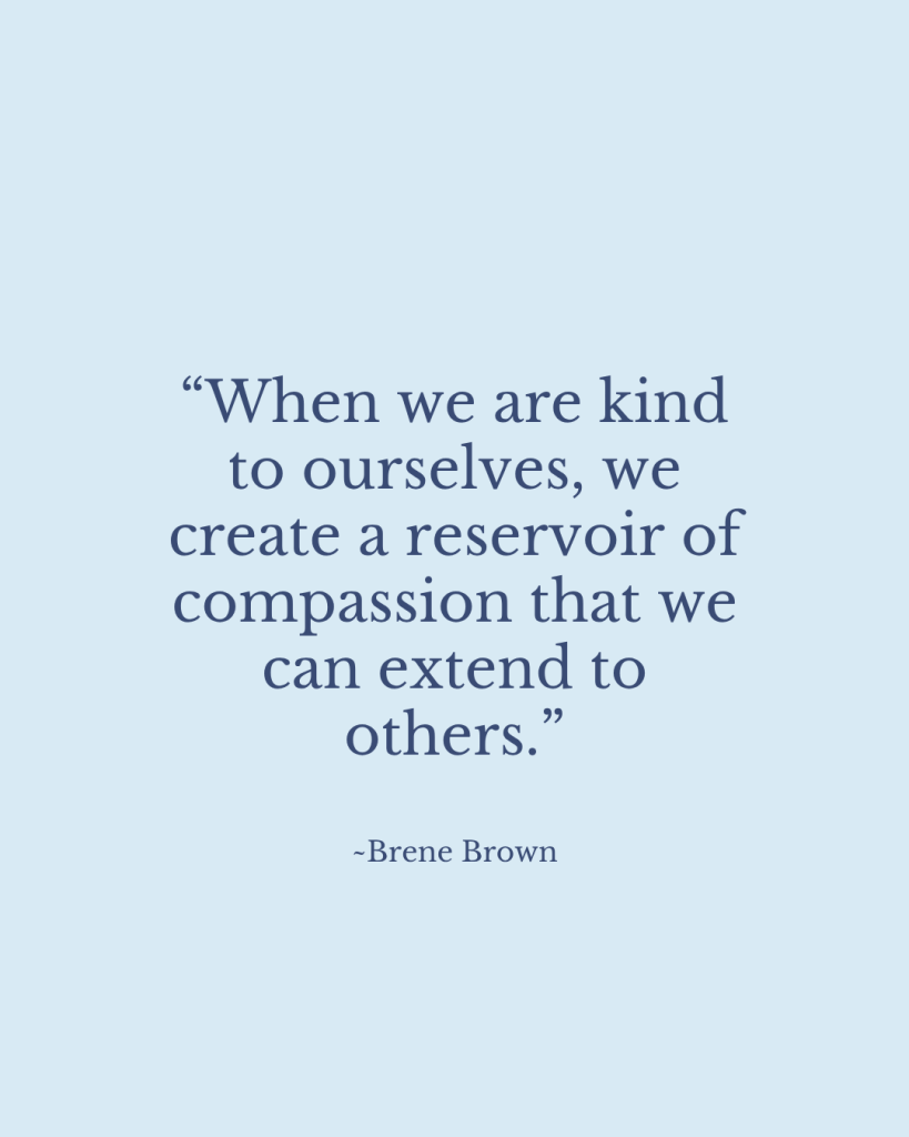 Each person’s most important task is to love themselves and care for themselves because every person is valuable and worthy of unconditional love. Also, it deepens our capacity to love others well. As Brene Brown says, the most compassionate people are also the most “boundaried” people (my paraphrase). The only way to sustainably give to others in healthy ways is to take care of yourself first.